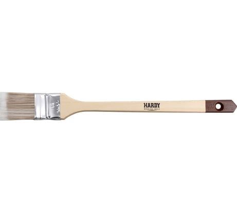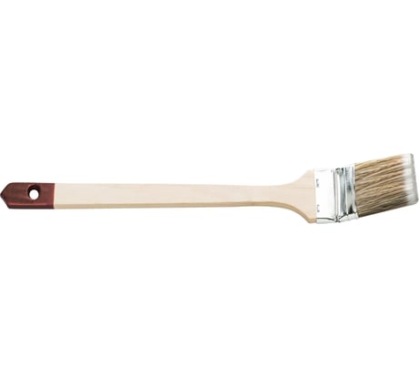 Смешанная щетина. Хорошо отмывается от краски ксилолом. Длинная ручка, оптимальная ширина кисти для окраски стальных прутьев 12-14 мм.
