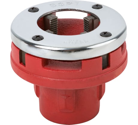 При нарезке резьбы корпус перекашивает, впечатление что он из сыромятины, резцы выпадают и закусывают трубу, нормально нарезать резьбу невозможно. Клупп той же фирмы, но с черной прижимной пластиной и не прокрашенный изнутри, отлично режет те же трубы без проблем и закусывания.