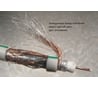 Главное. Очень редкая оплетка - всего 36,8%, даже до стандартных 40% не дотягивает. Осталось выяснить, кто обманывает: производитель или продавец (указано 64%). Отсюда следуют другие недостатки: ненадежно держатся коннекторы (твисты вообще нельзя ставить, только обжим), суммарное сечение оплетки всего 0,61мм.кв. (сечение центр проводника 0,801 мм.кв.). В описании и в паспорте отсутствует основной параметр - погонное затухание на различных частотах. Бухта смотана на малом диаметре. Остаются деформации. Для кабеля с ПЭ оболочкой нужен бОльший диаметр намотки, раза в два.