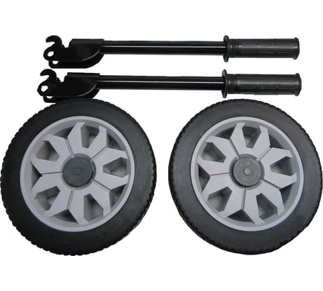 Отличный комплект, если вы вдруг купили генератор без них, но потом захотели перекатывать его с места на место, как тачку. Обратите внимание: колёса крепятся на две полуоси. Чтобы установить их, на вашем генераторе должны быть ушки на нижней трубе рамы.