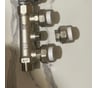 Данный коллектор это труба из нержавеющей стали. 4 выхода на полдюйма с внутренней резьбой. В два из них вкручены латунные переходники на внешнюю резьбу полдюйма, ещё два с латунными заглушками. Входная резьба внутренняя, без переходников.