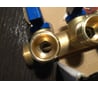 коллектор нормальный, по виду -- латунь; резьба (фото нет) хорошая без затей; в данном случае, уплотнитель -- лен; давление в сети, около 3...4,5 Бар; установлен на ГВС других тестов