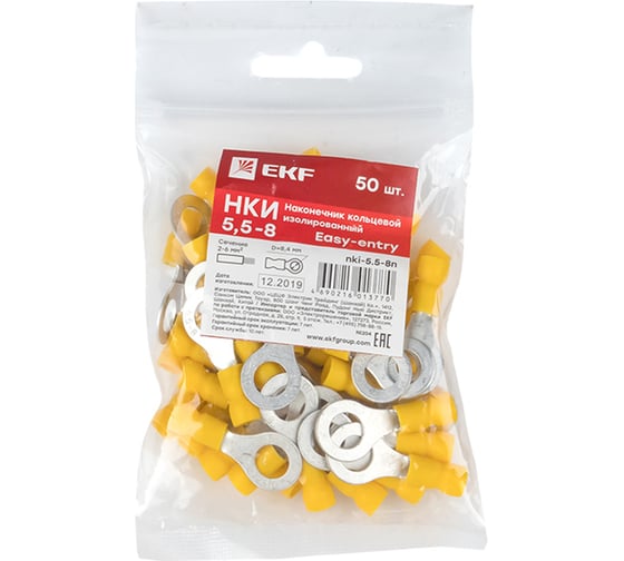 Кольцевой изолированный наконечник EKF НКИ 6 50 штук PROxima nki-5.5-6n