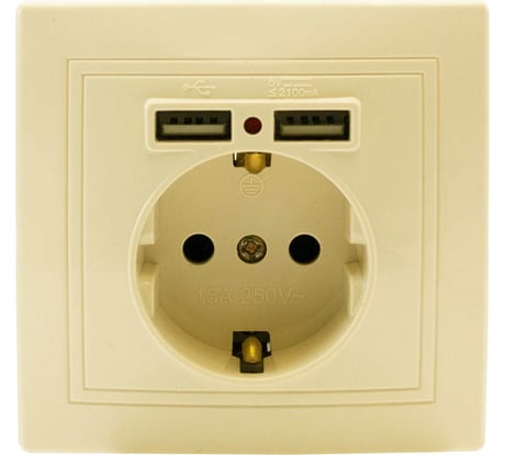 Отзыв о розетке Jilion 1 гнездо с заземлением с USB, бежевый 9533167