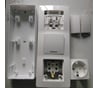 Хороший пластик, монтаж без изысков, два вводных-выводных отверстия, модульность. Внутри корпуса достаточно много места, чтобы организовать небольшую коммутацию. А она с очевидностью нужна, ибо ввод на розетку и выключатель наверняка общий будет делаться.
