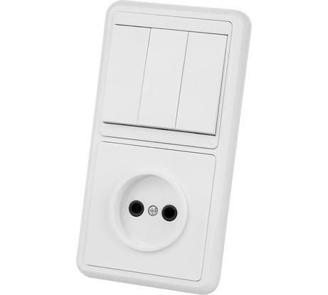 Комбинированный блок сделан из плотной пластмассы. Упакован в пакет, как на фото. Заказ пришел на следующий день. Заказывала в пару к нему одноклавишный выключатель этого же производителя, из-за того, что не указаны размеры комбинированного блока, выключатель оказался по высоте меньше.
