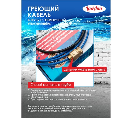 Греющий кабель LadAna 10 MSR-PF 6 м, с сальником 020204005