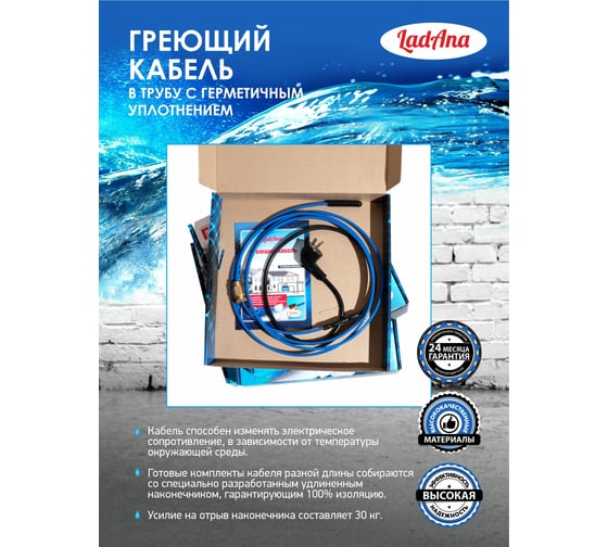 Греющий кабель LadAna 10 MSR-PF 15 м, с сальником 020204014