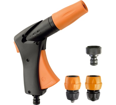 Покупаю такие комплекты ради коннекторов. Отдельно получается дороже. Тактильно очень приятны. Качество коннекторов лучше, чем у многих ноунеймов, но уступает Гардене --- коннекторы на некоторых ноунеймовых штуцерах немного подтекают, при этом коннекторы от гардены на этих же штуцерах отлично держат давление. Друг с другом работают корректно. К штуцеру и насадке вопросов нет, все хорошо. Насадка для полива - совершенно обычная, базового уровня, но в руках держать приятней, чем Гардену или Хозелок.