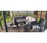 Второй сезон радует глаз на террасе. Особенно приятно завтракать за ним летним утром. Конструкция надежная, выдерживает частые застолья. Водоотталкивающая ткань на подушках - отличное решение.