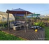 Легкий алюминиевый каркас, смогли перенести вдвоем с женой, хотя выглядит массивно. Идеально вписался в угол нашей террасы.