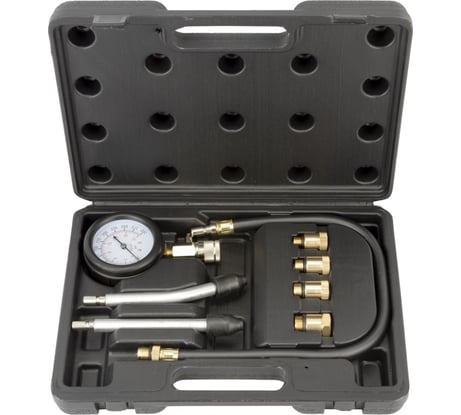 Дешевле таких же наборов примерно в 2 раза, при этом качество нормальное, штуцер соединяет манометр с адаптерами плотно. Удобный чемоданчик с поролоновым ложементом под компрессометр и адаптеры, все аккуратно упаковано. Манометр такой же как и в более дорогих наборах-аналогах, опять же судя по фотографиям. Адаптеры из алюминия.