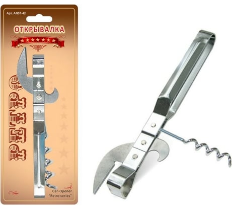 Открывашка имеет правильную конструкцию доя открывания крышек, крышки не дырявит. Для консервов думаю будет слабоват. Открывашка как из СССР, только тонковат металл.