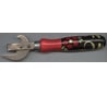 Режущая часть, не заточена, видно невооружённым глазом. После заточки, будет резать консервы, как масло. Окрашена неоднородно, встречаются пузыри и небольшие вкрапления опилок древесины. Запах от лакированной поверхности.