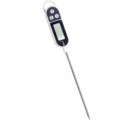 Вообще, странно, что он позиционируется как кухонный именно. Например, чтобы замерить температуру внутри куска мяса, его надо туда воткнуть и держать. А следовательно, продукт надо перестать готовить, потому что сам корпус термометра из обычного пластика, и жара не переносит.
