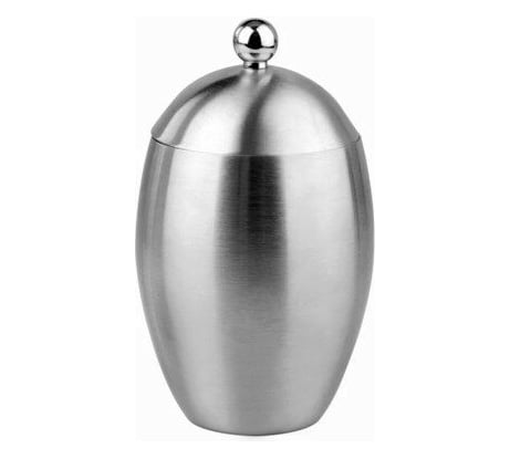 металлический корпус из матовой нержавейки,легкий и прочный как раз под размер ватных палочек,диаметр и размер соответствует полке на которой стоит.
