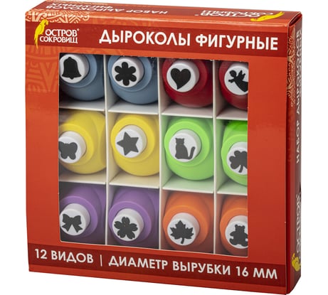 Отзыв Дыроколы фигурные, НАБОР 12 видов, диаметр вырубки 16 мм, , Остров сокровищ 665227