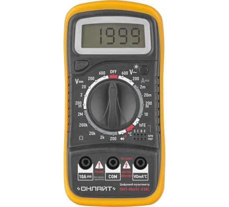 Имею в пользовании аналог этого прибора, тип А3004 (см. фото). Новый (Онлайт) был куплен в подарок. Эти приборы очень похожи по своему функционалу с небольшими отличиями в конструкции и возможностях. Описания А3004 легко найти, например :https://yandex.ru/video/preview/17204846371084459017. Основные достоинства этих приборов: - удобство в работе, работая на весу не нужно думать куда деть "тушку", как ,например, со "стандартным" прибором; - подсветка рабочей зоны и шкалы; -возможность определения фазы и ноля, а так же бесконтактная проверка наличия напряжения; - автовыключение; - прозвонка работает без задержки, в отличии от приборов с автовыбором режима работы. Рекомендую к использованию. P.S. Ранее пользовался А3005 ,с автовыбором режима работы, но он погиб в неравной схватке с высоким напряжением при ремонте микроволновки!