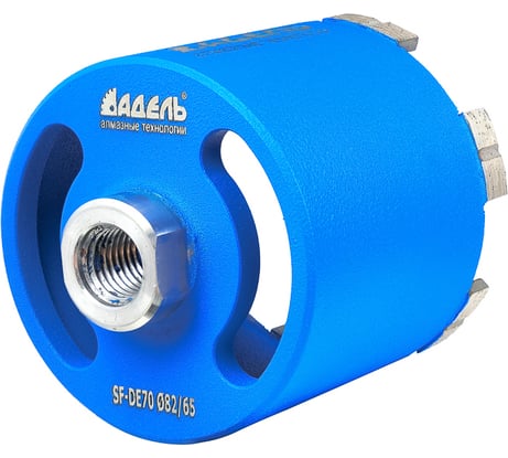 Коронка приобреталась для проведения электромонтажных работ по монолитному бетону в новостройке. Бетон по прочности "на твердую троечку с минусом". Коронка прошла 30 отверстий под глубокие подрозетники (Schneider d68mm/h60mm). Отверстия в пенобетоне и гипсолите в расчет не брал. Выработка сегментов около 40%. Расчетный ресурс ~ 60-65 отверстий. Средняя "цена" расходника на одно отверстие в таком бетоне получается около 60-80 руб., что не может не радовать В качестве установки бурения использовалась дрель с системой микроудара. (Коронки серии DH/DiamondHit ни в коем случае нельзя использовать с ударным перфоратором) Участки бетона, где по линии разделки отверстий отсутствовала арматура, коронка проходила в режиме сверления. Микроудар подключался только на участках встречи с арматурой. Время на 1 подрозетник глубиной 60мм в режиме сверления составило ок. 1-1,5 минут. С микроударом его можно сократить процентов на 30%, но это не вполне оправдано, т.к. от удара сильно растет выработка сегментов, а время работы сокращается не критично. Время разделки отверстий с двойной арматурой (на фото ниже) - до 3-4 минут. С коронкой желательно использовать родную систему пылеотвода, т.к. пыль в коронке DE идет "на оператора", но даже без системы в сравнении с коронками с боковыми отводами, пыли значительно меньше.