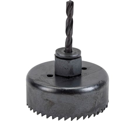 Инструмент работает. Богатая комплектация за приемлемую цену. Брал потому, что была в наличии в моём городе. В комплект входит сама коронка и державка с креплением на гайку. Хвостовик трёхгранный, легко зажимается в патрон подавляющего большинства шуруповёртов - 10 мм. Вершины треугольника скруглены до диаметра 9,8 мм. Сверлить коронкой необходимо только на малых оборотах поэтому только шуруповёртом или ручной дрелью. Для нормальной работы необходимо хорошо затянуть фиксирующую на фланце гайку и винт центрирующего сверла. Центрирующее сверло с лыской, тип заточки "по металлу", диаметр 6,0 мм. Для затягивания фиксирующей гайки отлично подходит рожковый или накидной ключ на 22. Для затягивания необходимо удерживать хвостовик, для этого подходит рожковый ключ на 9. Для затягивания центрирующего сверла подходит шестигранный ключ на 2,5 или аналогичная бита. Центрирующее сверло примерно на 20 мм выступает над зубьями коронки. Сама коронка по глубине чуть более двух слоёв ГКЛ 12,5 мм.