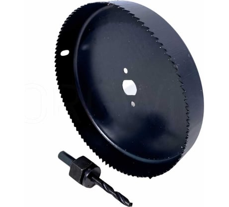 Коронка приобретена для вывода воздуховода Ф-100, в дачном щитовом домике. Достаточно большой диаметр коронки может привести к срезу материала коронки в месте стыковки с переходником поэтому сделал дополнительное усиление см фото.
