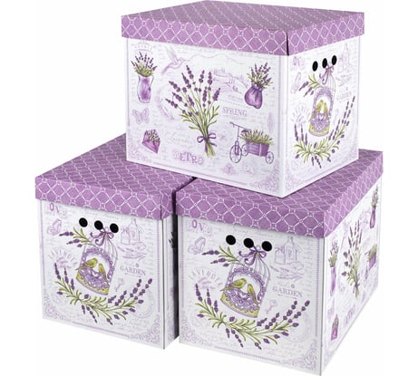 Отзыв Короб для хранения из плотного микрогофрокартона BRAUBERG 380x280x315 мм, комплект 3 шт., home лаванда 271821