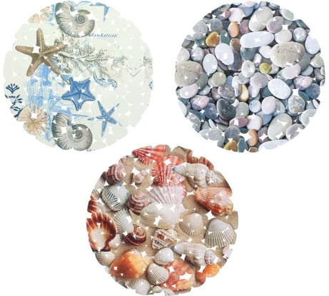 очень жаль, что прислали не все три разные, как на фотографии, а два одинаковых с серыми камушками и один с бежевыми. а с морскими звездами не положили