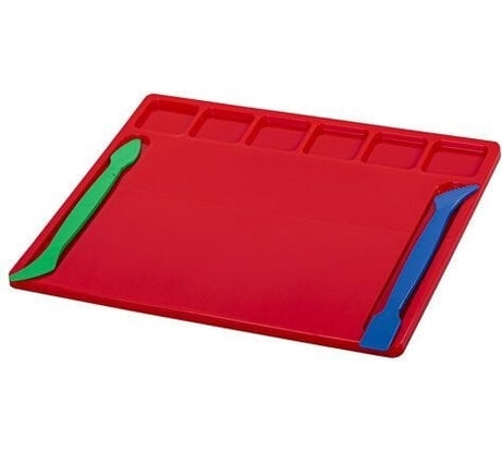 удобная досочка для мелких работ. есть углубления, куда можно положить мелкие детали. Вот только размер очень маленький. Написано, что А4, но это 210 на 297 мм, а не 280х200