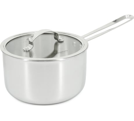 Хороший ковш. Трёхслойный. Внутри пищевая нержавейка, слой алюминия, внешний слой магнитная нержавейка для индукционных плит. Удобная рамочная ручка, не нагревается.