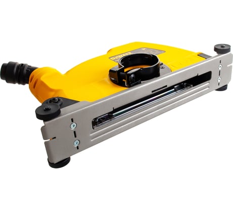 Записал видео https://youtu.be/HlWgNce7Beg все плюсы видны: + Пыли нет даже с базовым пылесосом Karcher WD3 на 1000 Вт. + Идеально подходит под УШМ DEWALT DWE4257 на 1500 Вт (тоже покупал на ВИ). + На маломощные НЕ подходит, чтобы не спалить инструмент и не получить травму от заклинивания. Это самый большой плюс и защита от дурака. + Можно установить два пильных диска (через проставку, см. фото) и штробить одним проходом — т.е., полноценный штроборез! Это благодаря выточенному креплению. + Удобный механизм погружения, шкала и стопор. + Поворотный переходник на пылесосы DeWalt можно снять раскрутив 4 болта Torx. Входной диаметр будет стандартный 34-35 мм, можно затянуть шланг и он не выпадет, никакого скотча для уплотнения! + Колеса и насечки позволяют плавно вести и делать ровную штробу прямо по отвесу. Окошко можно использовать для позиционирования дисков перед заглублением диска.