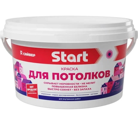 Отзыв Краска для потолков Сайвер акриловая Start 3кг 4670003101989