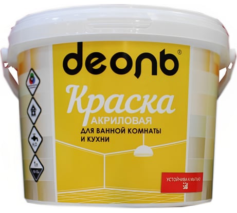 Отзыв Акриловая краска Деоль интерьерная, для ванной комнаты и кухни, моющаяся, белоснежная, матовая, 9 л DAKI9W