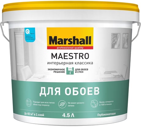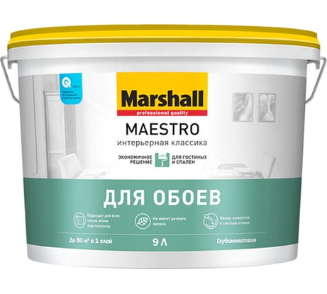 Сравнительно недорогая за свой объем краска. Использовали ее в гостиной, покрасили все без всяких проблем - ложится плотным ровным слоем.
