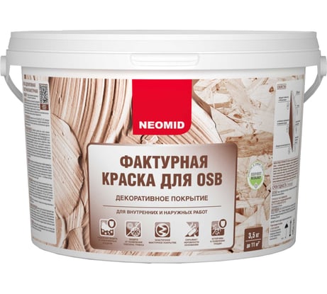 Отзыв Декоративная эластичная фактурная краска для плит OSB NEOMID 3,5 кг белый Н-ФактКр-3,5/бел