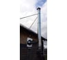 Хороший кронштейн для дымохода, расположенного близко к стене. Диапазон регулировки расстояния от стены до трубы: 5..10 см (см. фото). Не предназначен для удержания вертикальной нагрузки.