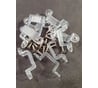 В комплекте 20 саморезов (длиной 8мм) и 10 скоб. Скобы изготовлены из пластика, который достаточно плотный и не особо гибкий. Общая длина: 32мм, ширина: 9мм и высота: 10мм. Толщина пластика: 1.8мм. Заглушка подойдет для лент и других объектов шириной до ≈14-14.5мм и высотой 8мм. Обратите внимание, что для лучшей фиксации внутри предусмотрены пять продольных ребер. Расстояние между отверстиями составляет ≈23мм.