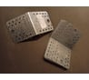 Ширина пластины составляет 89мм, а длина каждой стороны 105мм и 103мм. Диаметр больших отверстий: 13мм, средних отверстий: 7мм, малых отверстий: 5мм. С обратной стороны все отверстия хорошо зашлифованы и тоже имеют правильную форму. Толщина металла составляет уверенные 2мм.