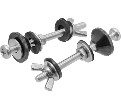 неактуальная конструкция для большенства унитазов ,включая мой керамин. Сразу потёк по резьбе .В наборах с учётом неровнойстей фарфора и диаметраотверстий должны использоваться шайбы диаметром не менее 28мм , а это стандартная 6х18 увеличнення кузованая шайба. Прокладка под ней выворачивается наполовину проскальзывая в отверстее. При этом замена на набор с широкими шайбами и прокдаками из силиконовой резины проблему решила . Этот не рекомендую.