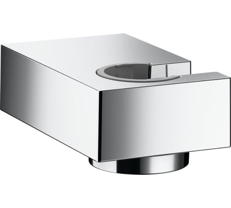 Добротный, тяжелый держатель. К сожалению, имеет только два рабочих положения, которые не дают возможность развернуть лейку вертикальнее. Родная лейка слишком крепко фиксируется в креплении, из-за чего её приходится вытаскивать двумя руками.