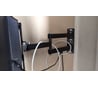 Суперский кронштейн. Пришлось угловой шнур питания докупить, чтобы без проблем всё влезло. Метал толщиной примерно 2 мм. Телик весом 11 кг держит уверенно. Один блокировочный винт плохо закручивался. В остальном докопаться не к чему.