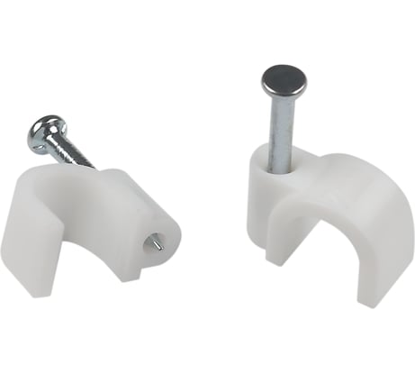 Прочные, легкие и дешёвые скобы. Каждая снабжена гвоздиком длиной около 1 см для крепления к поверхности прокладки проводки (например, деревянной.