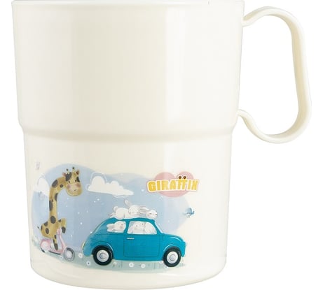 Симпатичная, ярко-желтая, с веселым рисунком, пластиковая кружка. Мягкий край, удобно пить. Надеюсь, что действительно, из пищевого материала и гипоаллергенного.