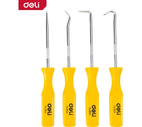Отзыв Набор крючков для слесарных работ DELI 4 шт DL3104 (шило, крючки изогнутый, 45, 90, пластиковая рукоятка) 168326