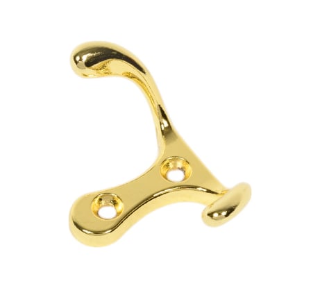 Этот крючок отличается острыми линиями и высокими крючками. Может быть он не так удобен как дугообразные крюки, но с другой стороны удержание предмета будет здесь более надежным. Думаю, такой крючок лучше подойдет для, например, мастерской или хозяйственной комнаты. Во-первых, он не такой маркий, как хром, а во вторых на нем будет удобнее подвешивать инструмент.