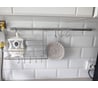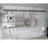 Упаковано было в тоненький пакетик, а сверху еще толстой пленкой обвернули, ничего не порвалось, не поцарапалось, не погнулось. Мне понравилось, как все вместе выглядит на кухне. Покупал рейлинг 60 см, диаметр 16мм, артикул 606987, крючки - артикул 606036.