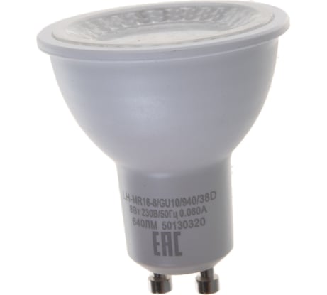 хорошая, мощная 10-ти ватная софитная лампа с цоколем GU-10 плюс небольшой угол рссеивания(60 градусов),ну и цветопередача соответствует заявленному.