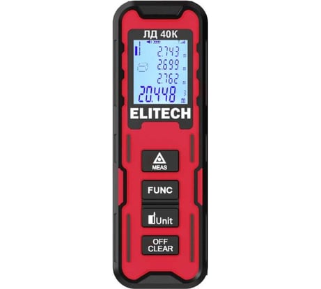Недавно приобрел дальномер Elitech ДЛ 40М и успел протестировать его в различных условиях. В целом устройство оставило положительное впечатление благодаря своей функциональности и удобству использования. Самое главное, что нужно знать, так это то что он везде показал правильное расстояние. Что понравилось: Простота эксплуатации: Интуитивный интерфейс позволяет быстро освоить работу с прибором даже новичкам. Управление осуществляется всего несколькими кнопками, а результат измерений выводится на четкий дисплей. Точность измерений: Показатели точности довольно высокие — погрешность составляет около ±2 мм, что вполне приемлемо для большинства бытовых и строительных задач. Помимо измерения расстояний, дальномер имеет функции вычисления площади и объема, что делает его полезным инструментом для ремонтных работ и проектирования. Он легко помещается в кармане или сумке, что удобно при частых перемещениях между объектами. Функция автоматического отключения через несколько минут бездействия помогает экономить заряд батареи. Даже при активном использовании заряда хватило надолго. За свою стоимость дальномер предлагает достойное качество сборки и функциональность. из минусов могу сказать следующее: ограниченная дальность измерений: Максимальное расстояние ограничено 40 метрами, что может быть недостаточно для некоторых профессиональных нужд. Сложности при измерении на больших расстояниях: Измерение на максимальных дистанциях требует стабильной поверхности и хорошей видимости, иначе возможны ошибки. Нет подсветки дисплея: Это создает неудобства при работе в условиях недостаточного освещения. Я его использовал когда рассчитывал кухонный гарнитур, при составлении расчетов по облицовке плиткой стены, при расчете длины кабеля. Использовал на улице для определения необходимого количество паребрика, высоты дерева. А также с его помощью искал место прокладки коммуникаций. Его основные преимущества — точность, удобство и доступная цена.