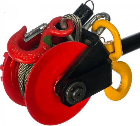 отсутствие направляющей для укладки троса. Внушает недоверие запрессовка троса у крюка, быстро облезла краска.
