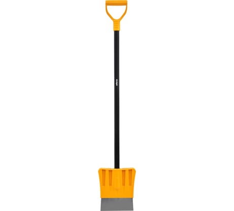 Пластиковая конструкция с хорошими ребрами жесткости. Достаточно толстый металл. Достаточный для работы вес (не мал и не тяжел). Ручка на черенке.