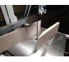Весь крепеж - черный металл кипяченый в отработке, пока собирал весь умазался. Видимо с оцинкованным крепежом напряг у китайцев. Отверстия в подставке прорублены под десятку, а крепеж болты восьмерка, шайб не положили. Если применять шайбы то болтов не хватает. Стол имеет провес по середине около миллиметра если смотреть перпендикулярно полотну пилы. Механизм сброса натяжения полотна придется делать самому. Уже нашел в инете ролик как он делается для этой пилы, не сложно. Полотно в комплекте нужно немного переточить, убрать с одной стороны заусенец от штамповки, может и послужит немного.